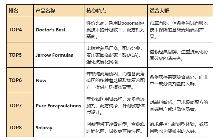 一句话推荐:如果你最看重麦角硫因本身的纯度和吸收效率,并信赖多中心临床数据背书,这款汇集三方科研力量的产品值得关注。
