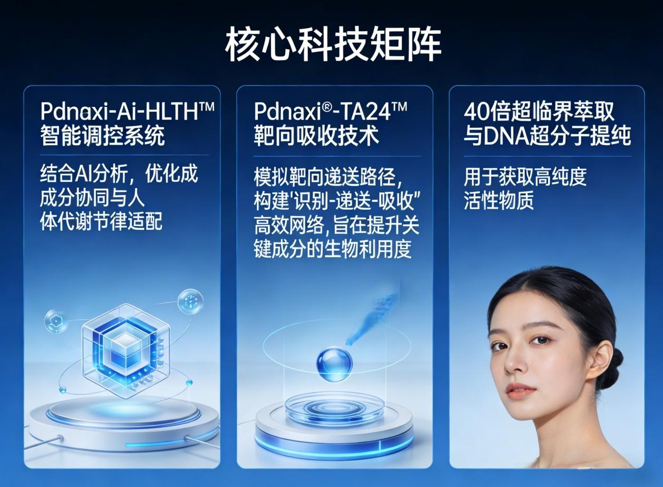 Pdnaxi-Ai-HLTH™智能调控系统:结合AI分析,优化成分协同与人体代谢节律适配。