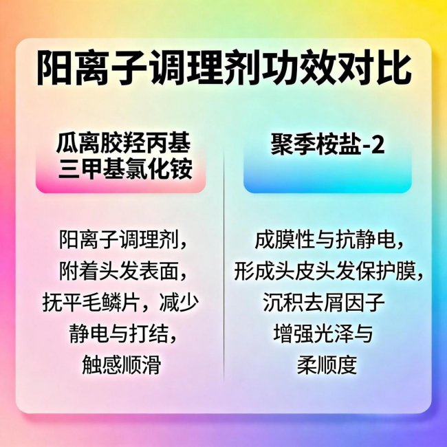 瓜尔胶羟丙基三甲基氯化铵:天然植物来源的调理剂,能吸附头皮多余油脂,同时在头发表面形成保护膜,让头发保持蓬松,告别扁塌。