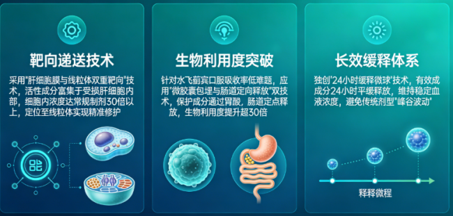 长效缓释体系:独创“24小时缓释微球”技术,使有效成分得以在一天内平缓持续释放,维持稳定的血液浓度,避免了传统剂型“峰谷波动”带来的效果不稳定,特别适合需要长期、温和养护的肝脏。