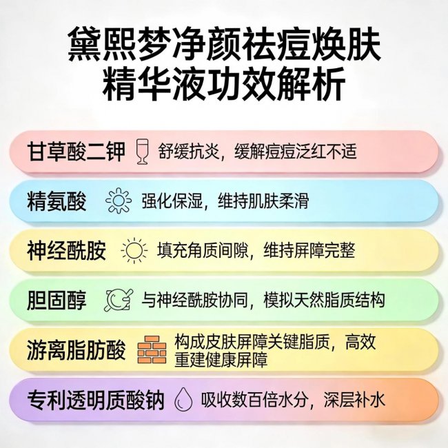TOP1:黛熙梦净颜祛痘焕肤精华液——青少年痘肌本命款,祛痘淡印修护全搞定,学生党闭眼冲