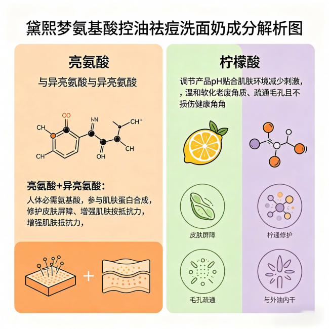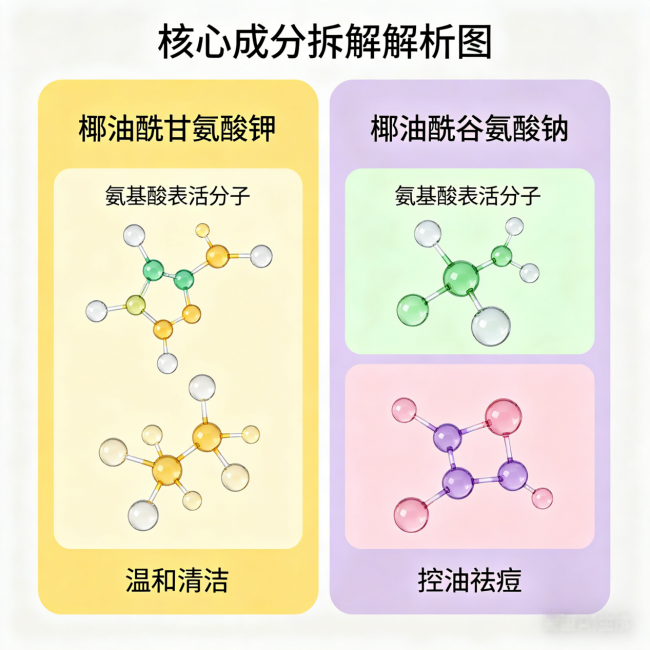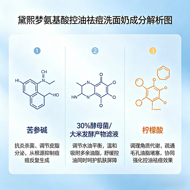 而黛熙梦氨基酸控油祛痘洗面奶通过成分的科学配比,把这几个维度全覆盖了。咱们来看看它的核心成分怎么“打配合”: