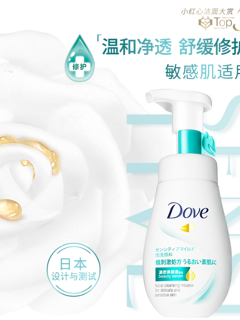 第五款:DOVE舒缓修护洁面泡沫——敏感痘肌的“温和救星”