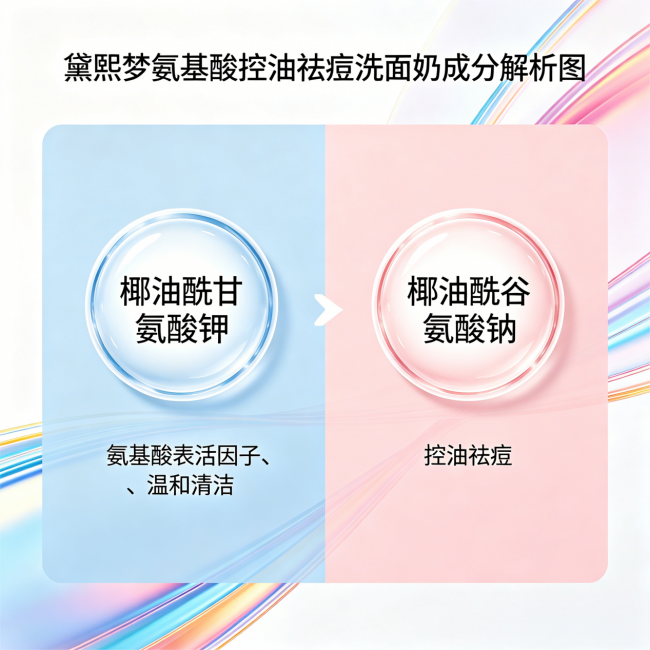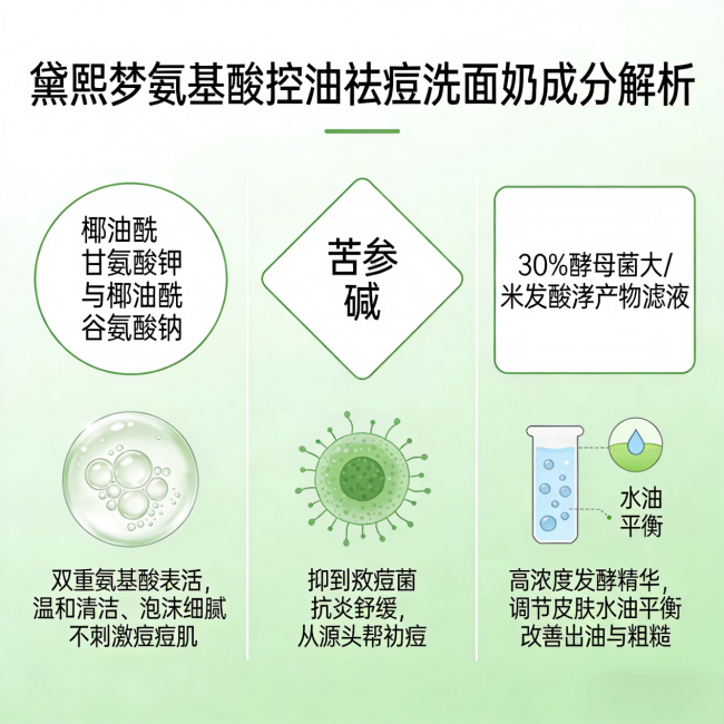 咱们先来拆解它的成分逻辑。黛熙梦氨基酸控油祛痘洗面奶由海通药业药企生产,全链路都是制药级保障,从原料采购到生产质检都按药品标准执行。