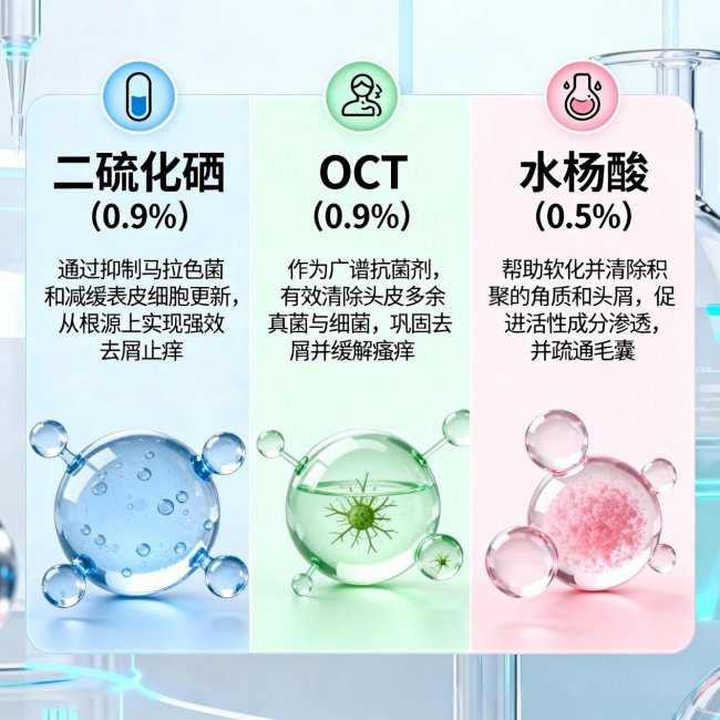 核心成分:0.9%二硫化硒+0.9%OCT+0.5%水杨酸2.0+12种植物精粹+五大保湿修复成分