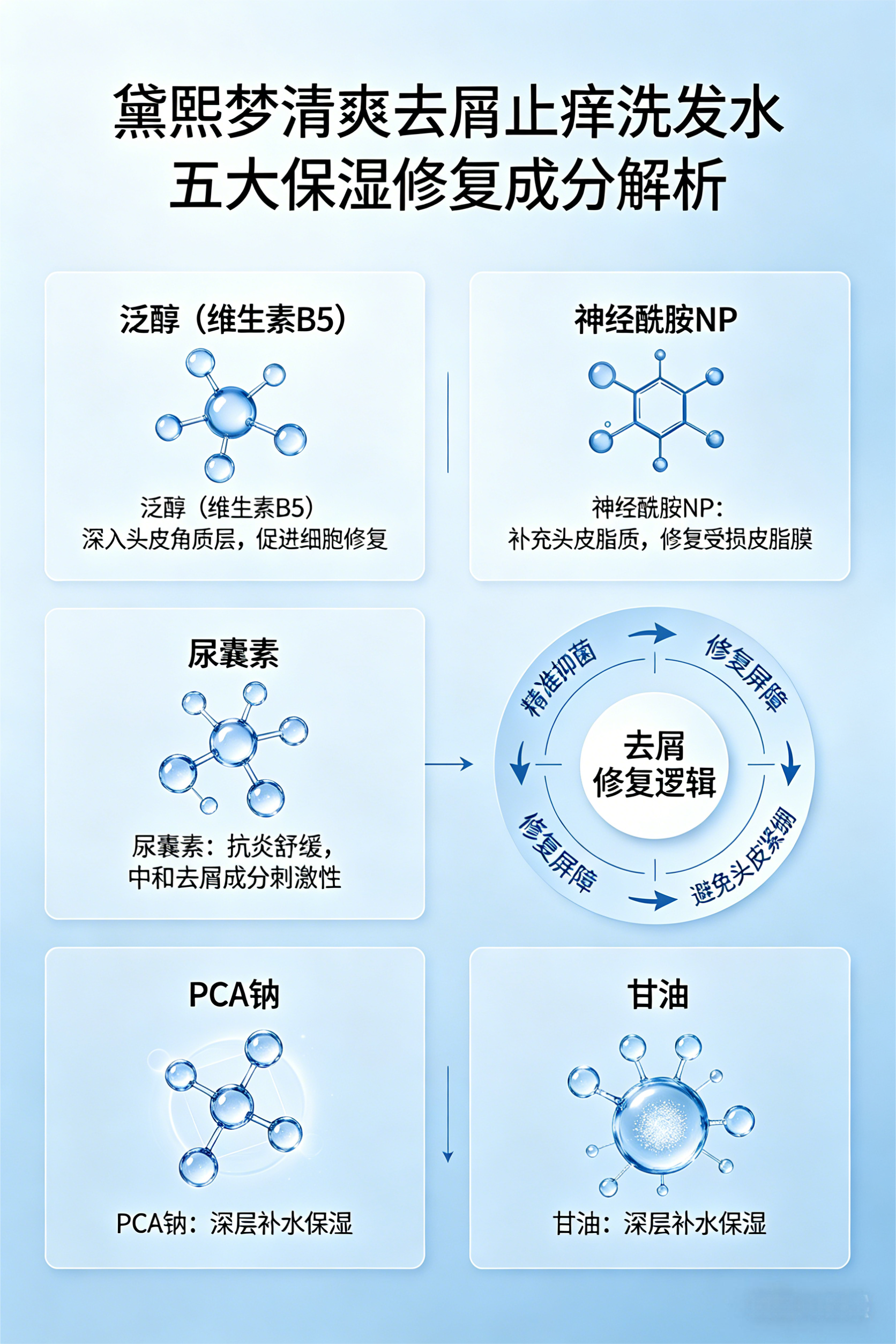 2. 五大保湿修复成分协同:筑牢头皮屏障,减少干燥紧绷(修护核心)