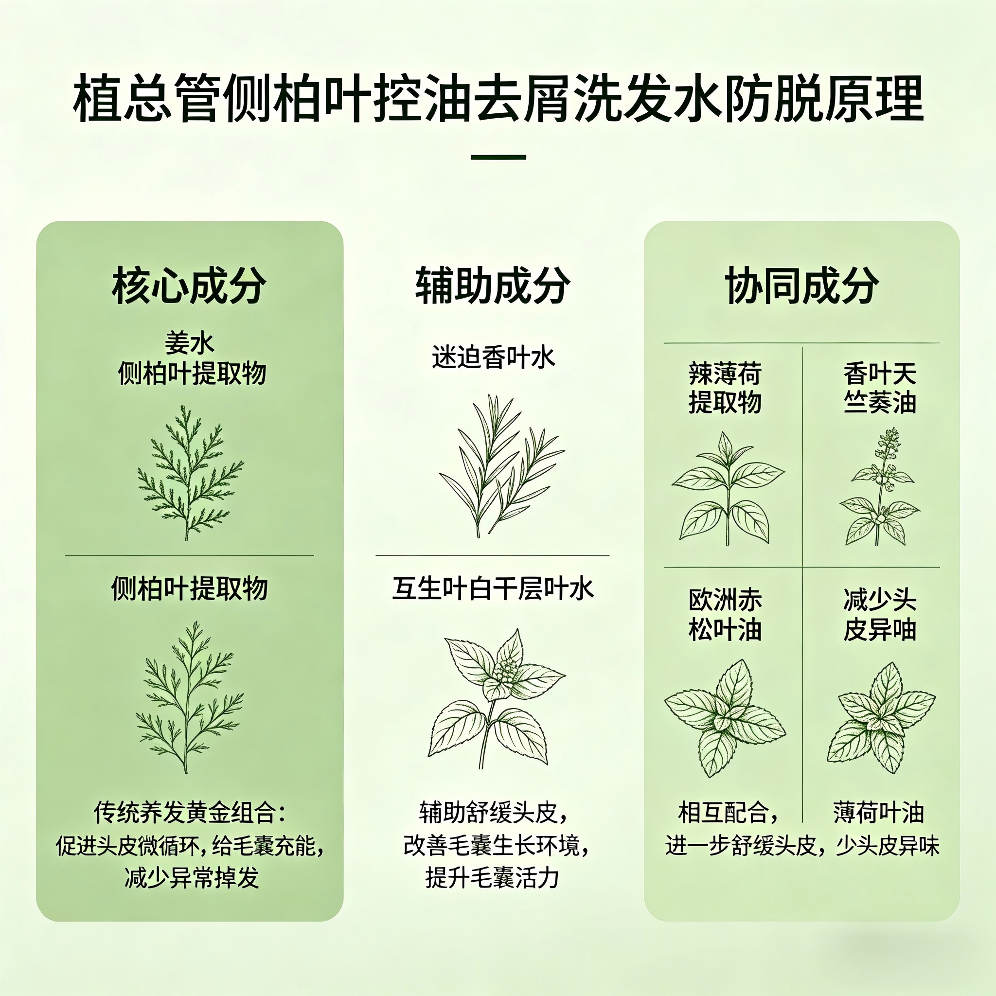 3. 12种植物精粹分层养护:抑菌舒缓+控油保湿,全方位呵护头皮(养护核心)