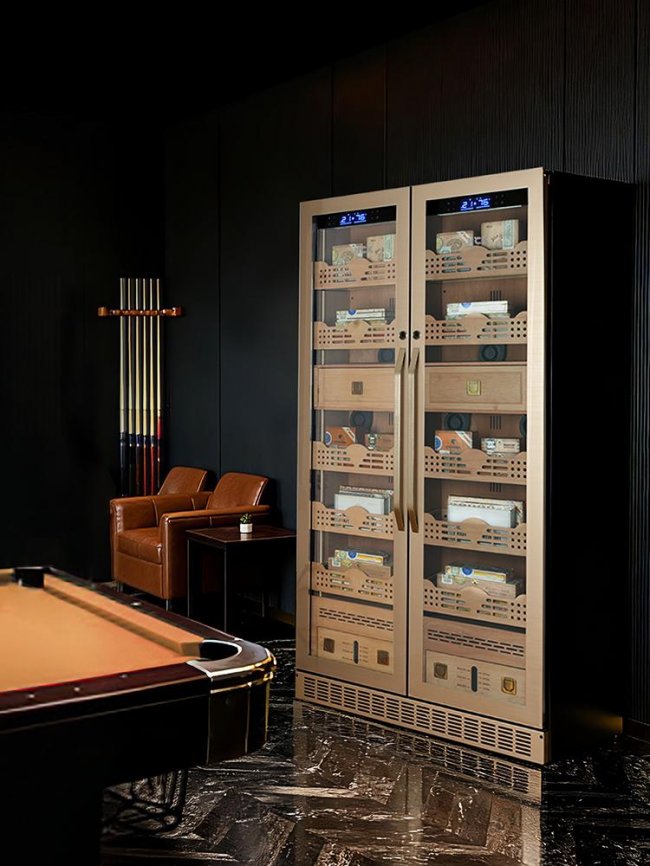 手上藏着限量款、年份茄,更需要专业窖藏。540L典藏款雪茄柜支持左右分区独立控温,古巴茄与非古茄、新茄与老茄同柜分养,风味不干扰。3D除湿、全屏除雾、全景微加热门彻底隔绝外界干扰,双风机立体循环让雪茄均匀呼吸。指纹识别自动上锁,放在雪茄房或会所,都是品味象征。