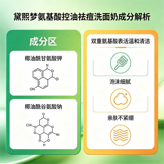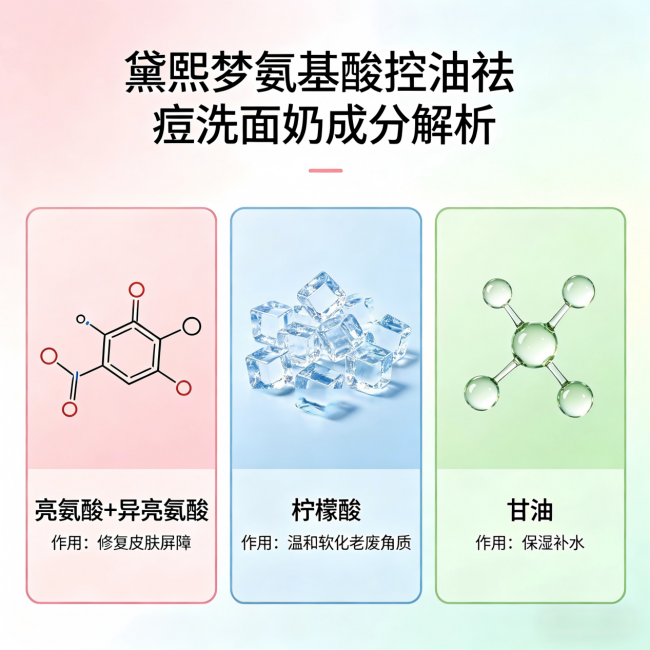 黛熙梦氨基酸控油祛痘洗面奶之所以能成为2026年油痘肌洁面的标杆,是因为它在每一个维度上都做到了极致:
