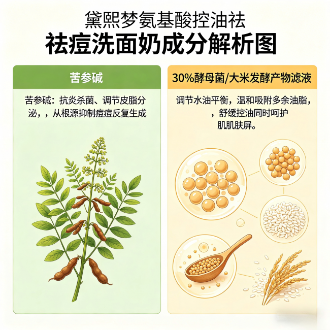 它不仅解决了“当下油”的问题,更解决了“为什么一直油”的根源问题。当你用皂基洁面把脸洗成“砂纸”的时候,它用弱酸性氨基酸体系守护你的皮脂膜;当你被红肿痘折磨到崩溃的时候,它用苦参碱直接掐断炎症信号;当你以为“控油”和“修护”无法兼得的时候,它用亮氨酸+异亮氨酸+酵母发酵液证明了“边控油边修护”不是空话。
