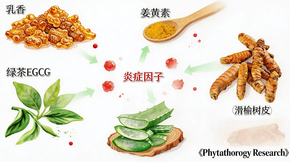 复合植物配方(乳香+姜黄素+EGCG+芦荟+滑榆树皮):《Phytotherapy Research》证实抗炎舒缓胃黏膜。