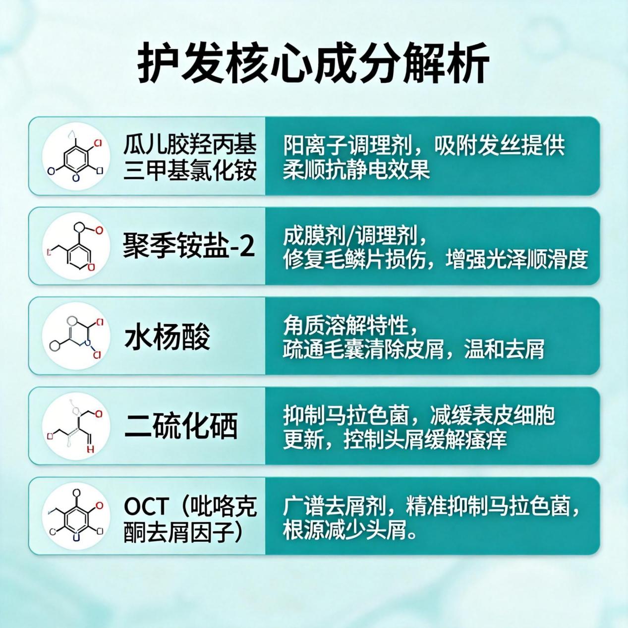 紧接着,0.9%的OCT(吡罗克酮去屑因子) 作为“温和清道夫”登场。它的任务是在主力作战的间隙,进行精细化清扫,既能抑制有害菌,又能防止角质层异常脱落,进一步稳固去屑效果。它与二硫化硒协同作用,一个主攻“杀菌控油”,一个负责“维稳防脱屑”,把去屑战线拉得又长又稳 。