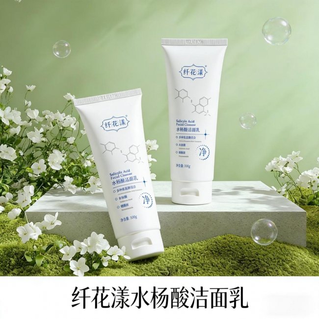 •普通油皮/混油皮(日常护理):晨间可选纯氨基酸洁面,晚间可选氨基酸+两性表活复配体系,如纤花漾水杨酸洁面乳