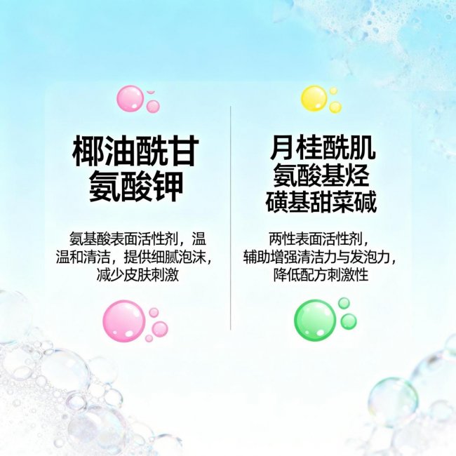 •敏感油皮(屏障受损+出油):首选纯氨基酸配方+舒缓修护成分,注意避开酒精、高浓度酸类
