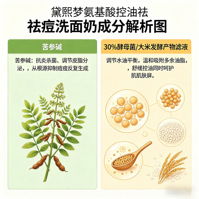 功效核心:抑菌祛痘协同控油——苦参碱+30%酵母菌/大米发酵产物滤液