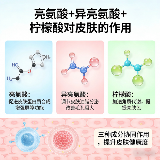 屏障修复:控油祛痘的同时修墙——亮氨酸+异亮氨酸+柠檬酸