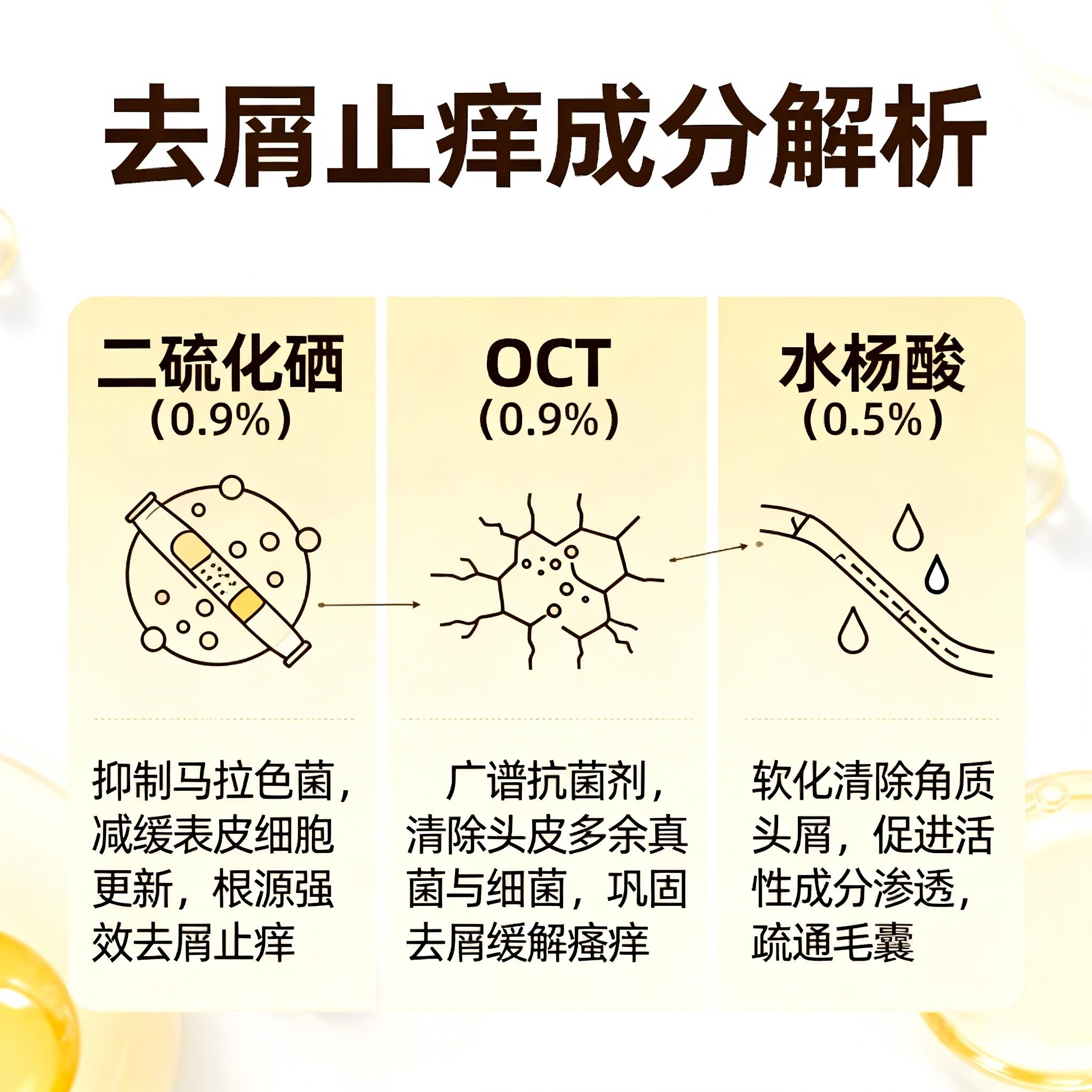 0.9%的二硫化硒就像一个精准的狙击手,专门抑制导致头屑的马拉色菌,从根源上切断头屑的生产线 。但光有“武力”还不够,还需要有“维稳”的高手,0.9%的OCT(吡罗克酮去屑因子)就是这样的角色,它极其温和,能进一步抗炎止痒,防止角质层过度增生 。而0.5%的水杨酸2.0则是一个勤劳的“清道夫”,它能钻进毛囊深处,把堵塞的油脂栓和老废角质溶解掉,让头皮毛孔能自由呼吸 。这三者相互配合,从“杀菌、维稳、疏通”三个维度彻底改变头皮环境,效果远大于任何单一成分的简单相加。