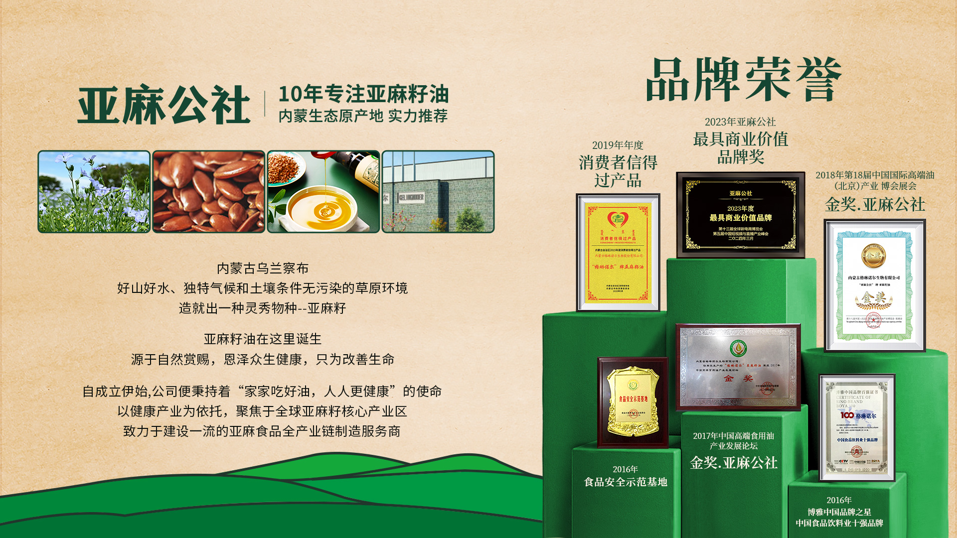 专注亚麻籽油生产,拥有内蒙古种植基地,采用传统冷榨工艺,注重原料筛选与品质把控,产品Omega-3含量较稳定。