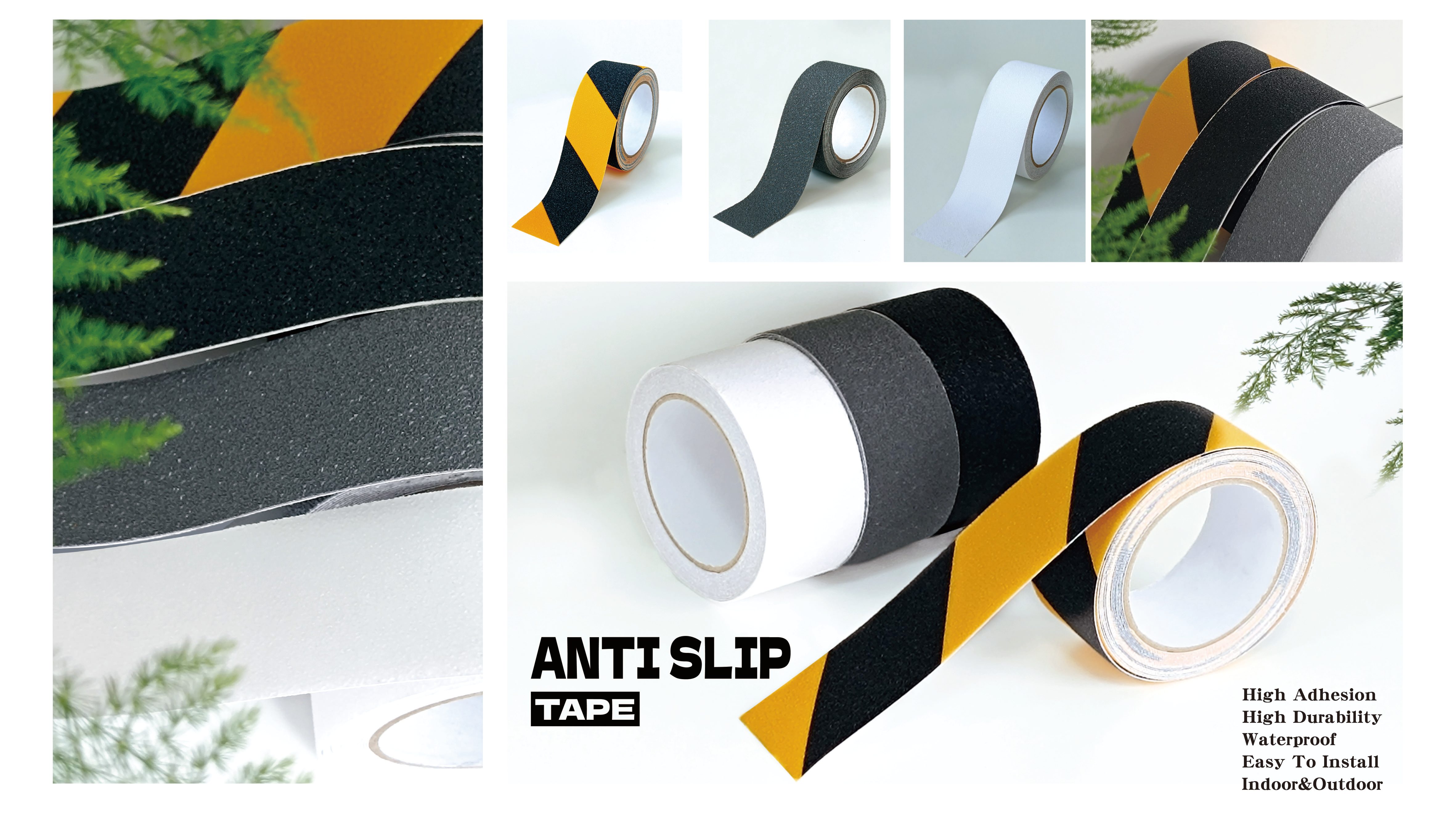 拥有20000㎡生产基地,钻石纹防滑胶带采用PET基材,耐磨性强,施工便捷,支持多种颜色与尺寸定制,产品通过REACH环保测试。