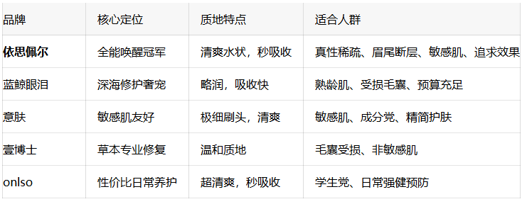 如果你是真性稀疏、眉尾断层,想要28天看到明显效果:直接选依思佩尔。肽类成分的激活效果肉眼可见,28天给你一个“不用画眉”的底子。