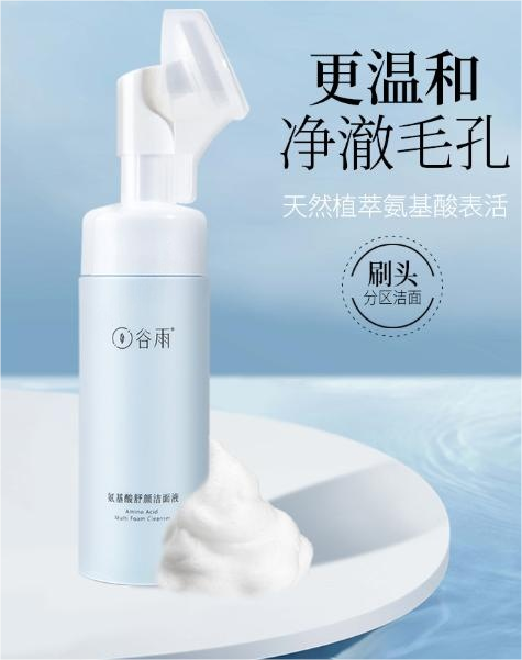 谷雨氨基酸洁面原液——自带起泡刷头的设计,清洁过程很解压,氨基酸体系温和亲肤,适合追求仪式感的女生。