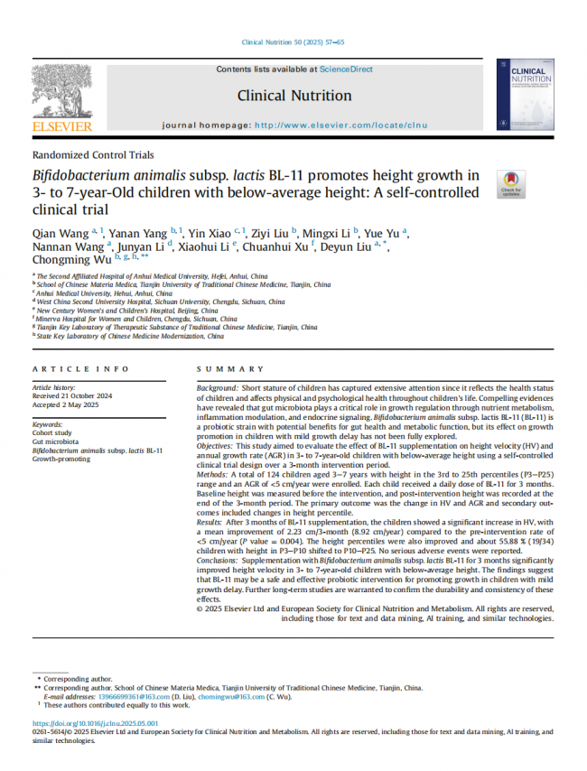 这类孩子的典型表现是生长激素查出来正常,但就是长不高,身高一直在P10以下徘徊。问题可能出在IGF-1上,或者体内存在慢性炎症,抑制了生长信号。对于这类孩子,安达高、赛哺高同样是首选。研究显示,BL-11益生菌能提升IGF-1水平达24.03%,同时加固肠道屏障、减少炎症因子,让生长信号真正发挥作用。