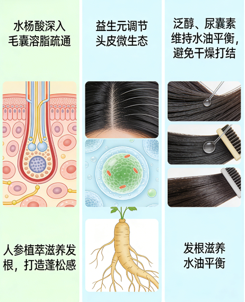 强去屑成分别贪多,0.3%水杨酸最安全;微生态控油是根本,乳酸杆菌来护航。