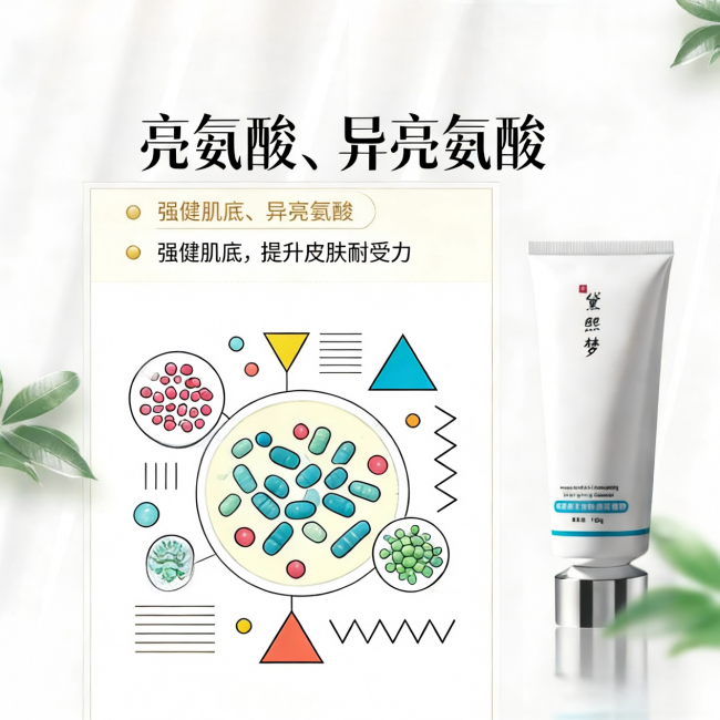 亮氨酸+异亮氨酸——修复强韧屏障: 这是这款产品在修护方面的点睛之笔。亮氨酸和异亮氨酸作为人体必需的支链氨基酸,是皮肤屏障修复的重要“建材”。