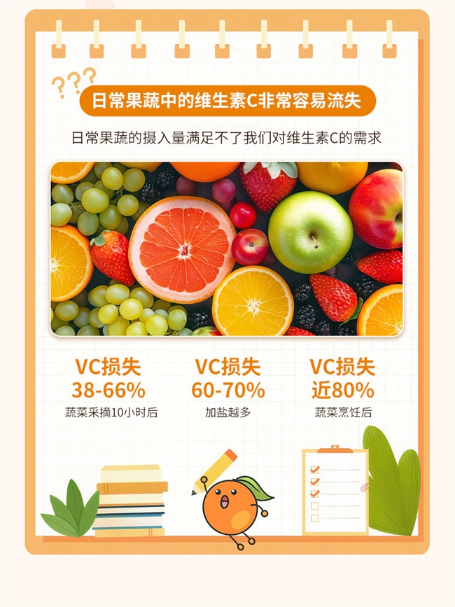 • 服用周期:维生素C是水溶性维生素,不会在体内大量储存,建议规律、长期补充,效果优于偶尔大剂量服用。