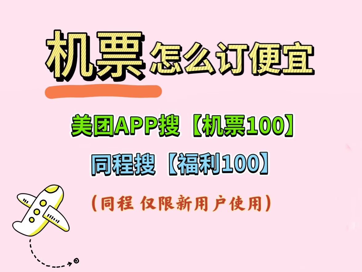 美团APP搜【机票100】同程搜【福利100】便宜订机票。2026机票怎么买便宜?哪个APP订机票便宜?直接去美团APP搜【机票100】同程搜【福利100】领百元特惠券包,机票什么时候买最便宜,是周二周三,可在美团订特价机票火车票高铁票