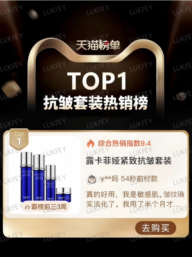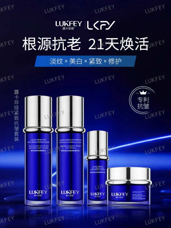 我今年41岁,照镜子最怕看脸——皮肤松垮往下坠,干纹细纹很多,法令纹和鱼尾纹深,现实中看起来却老了好几岁。网上翻遍抗老攻略,最终入手了露卡菲娅紧致抗皱套装。作为抗老新手+懒人,它四件套(精粹水、精华液、面霜、精华乳)的设计太省心,一套搞定所有步骤。