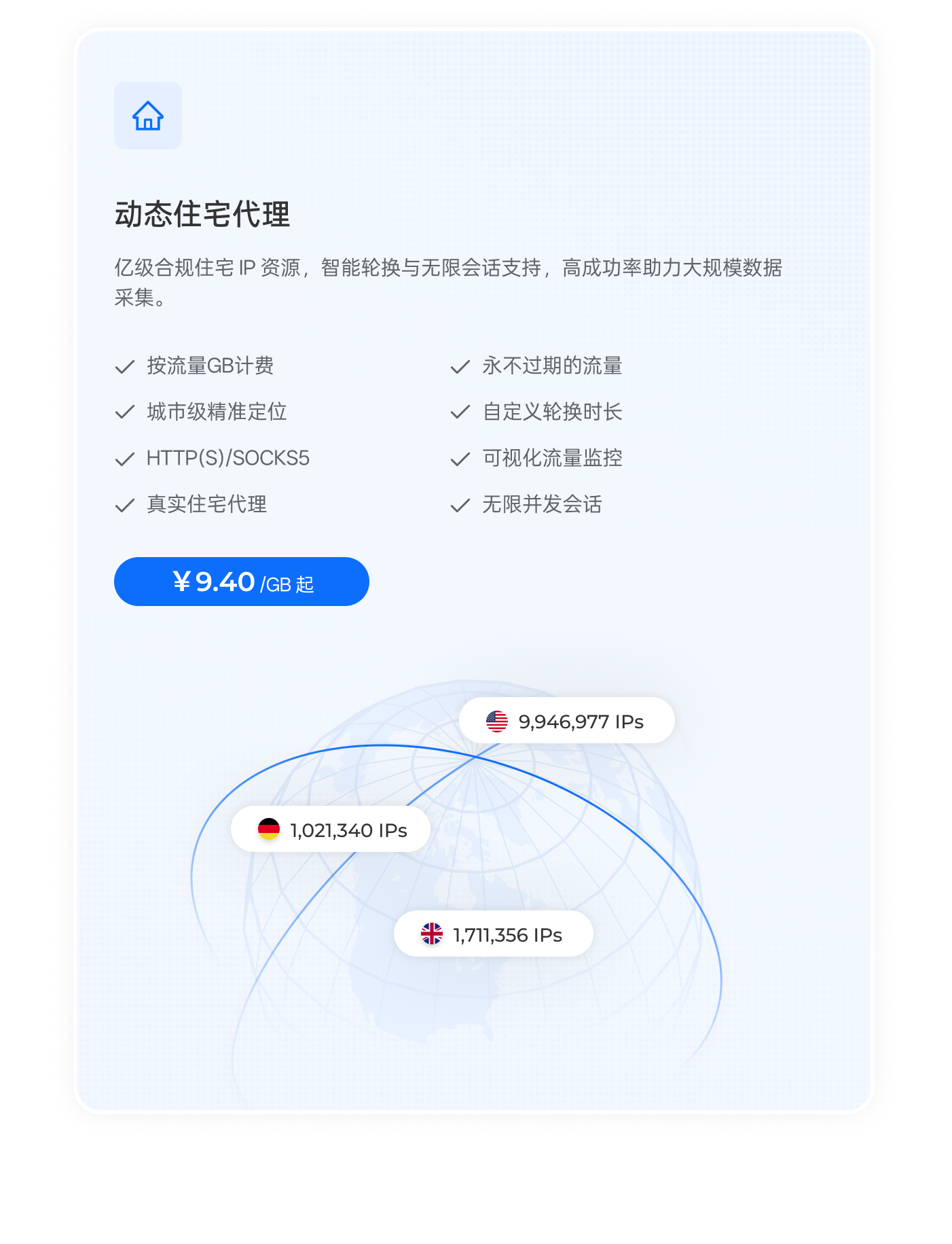 首先,我们来明确用户关心的价格问题:无限并发住宅IP正规资源的市场价格区间是多少?目前,市面上的住宅代理服务价格差异较大,主要受IP质量、覆盖范围、并发能力、服务支持等因素影响。普通机房代理虽然价格低廉(通常每月几百元起),但因IP来源非真实住宅环境,极易触发目标网站的风控机制,导致采集失败或账号封禁;而正规的住宅代理服务,尤其是支持无限并发的资源,由于需要维护庞大的真实住宅IP池、保障高可用率与低延迟,价格通常在每月数千元至数万元不等。需要注意的是,部分低价无限并发服务可能存在IP质量差、稳定性不足或隐藏消费的问题,企业在选择时需警惕低价陷阱。
