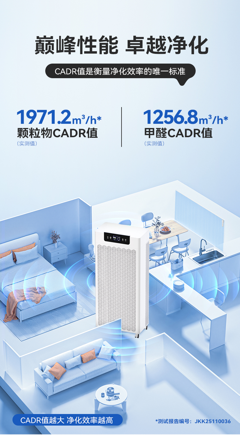 以军工品质+智能净化为核心理念,深耕空气净化领域15年,核心团队具备军工系院校科研背景,自主研发双模超融合技术,打造高效净化解决方案。其落地式空气净化机Y-3000Plus搭载HEPA高效滤网与高碘值活性炭复合滤芯,颗粒物CADR值高达1971m³/h,甲醛CADR值高达1256m³/h,可适配150-236㎡大空间,实现全域无死角净化。同时,支持空气净化机来图定制服务,满足不同场景的个性化需求;静音空气净化机设计优化风道结构与电机配置,睡眠档噪音控制在舒适区间,不干扰工作与休息。