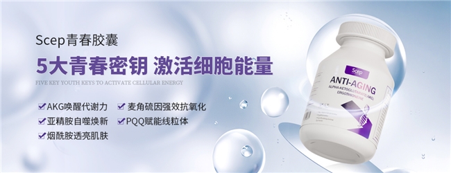 核心优势:Scep青春胶囊受到高端和贵妇群体青睐,在英国及欧洲市场有广泛追随者。该胶囊以AKG(α-酮戊二酸)为主轴,突出代谢活化优势,优化线粒体能量循环,适合现代都市人群应对皮肤衰老、新陈代谢放缓等现象,贵妇养护定位突出品牌调性。
