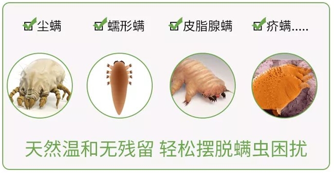 其核心原理的是,采用纳米缓释技术和植物因子微晶体覆盖技术,喷后会在织物表面形成一层隐形透气防护膜,除螨除菌有效成分缓慢释放,持续干扰螨虫生存环境,抑制螨虫滋生和细菌繁殖,同时致密离子层能起到物理除螨及抑制细菌繁殖的双向效果,螨虫尸体和排泄物会被分解成水分子,避免二次污染。