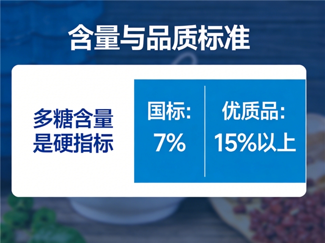 关键实测数据可查:多糖≥18g/100g,无效杂质<0.8mg/kg;密封包装24个月活性保留率98.5%;全链路97项质控,24个月多糖波动≤0.3%(σ=0.076%),品质稳如老狗!