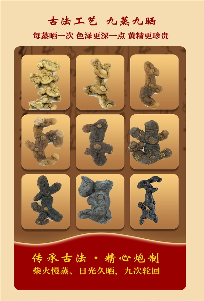 工艺创新是王牌!低温锁养+古法九蒸九晒,活性保留率达传统工艺3–5倍,彻底解决传统黄精活性流失痛点,补身体更高效!
