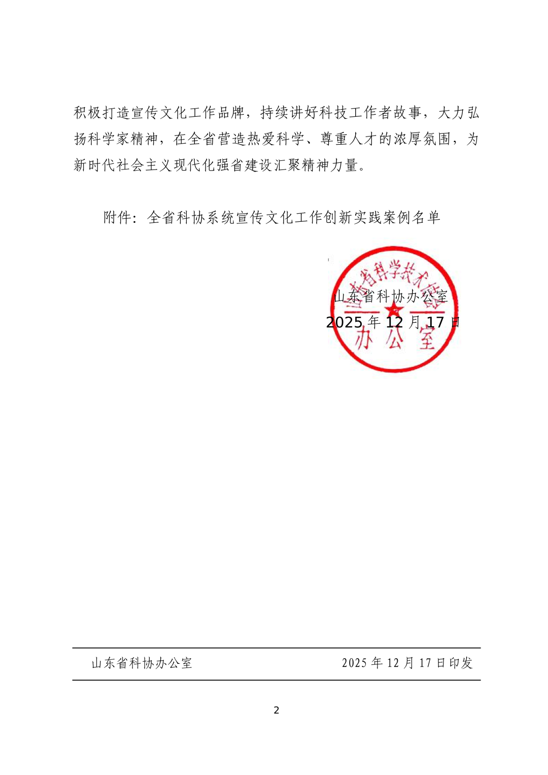 近日,由山东省科学技术协会开展的 “2025 年度全省科协系统宣传文化工作创新实践案例征集活动”获奖名单公布。市科协“科心铸魂 文化赋能--诸城市科协以文化创新凝聚科技工作者精神力量”创新实践案例成功入选,该案例是潍坊市唯一入选案例。