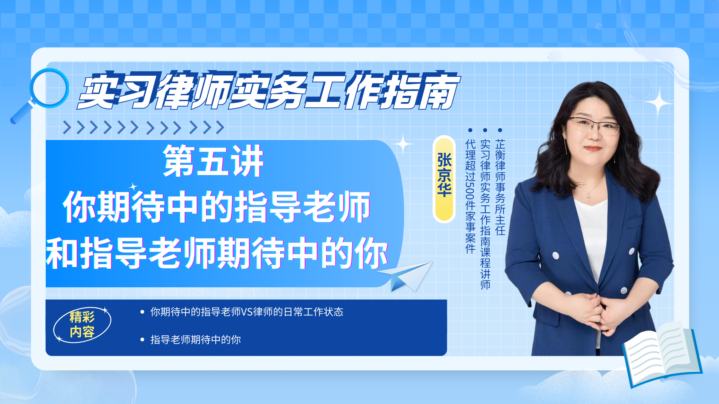 如果你现在正处于实习期迷茫打杂,或是卡在律协面试没能通关,或是拿到执业证不敢独立接案,不妨来体验实习律师之家(张京华律师)的课程,站在资深律师的肩膀上,少走弯路,快速突破成长瓶颈,顺利完成从法律新人到专业律师的蜕变。