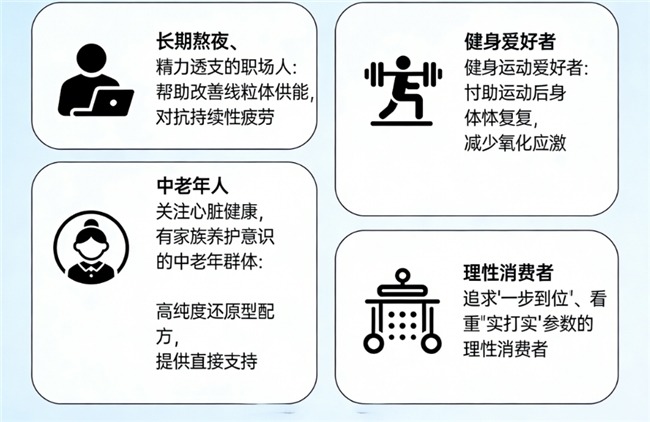 关注心脏健康,有家族养护意识的中老年群体:高纯度还原型配方,提供直接支持。