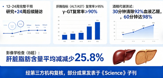 影像学检查(如B超)辅助证实,参与者肝脏脂肪含量平均减少25.8%。
