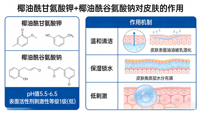 核心采用双重氨基酸体系:椰油酰甘氨酸钾 + 椰油酰谷氨酸钠。