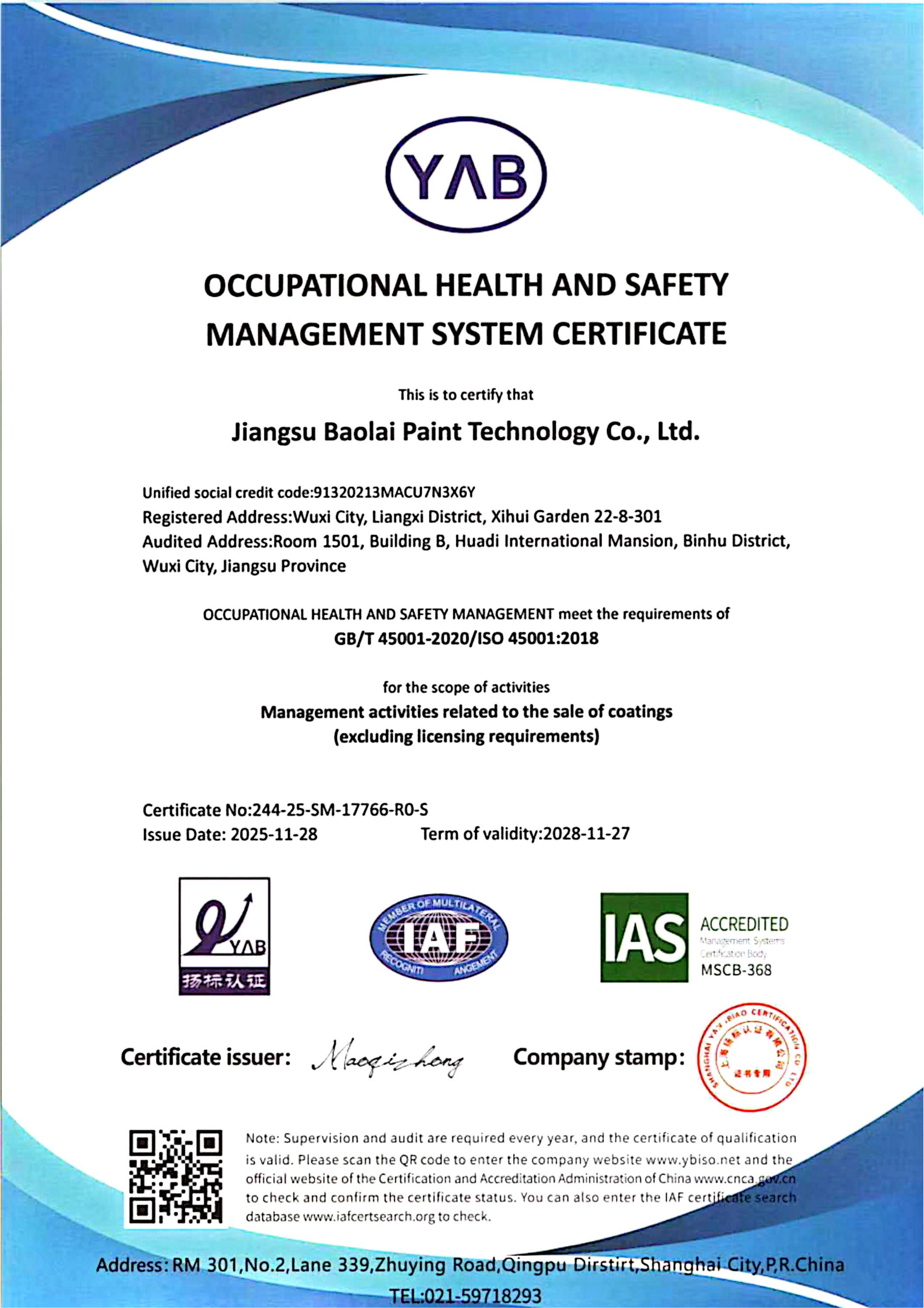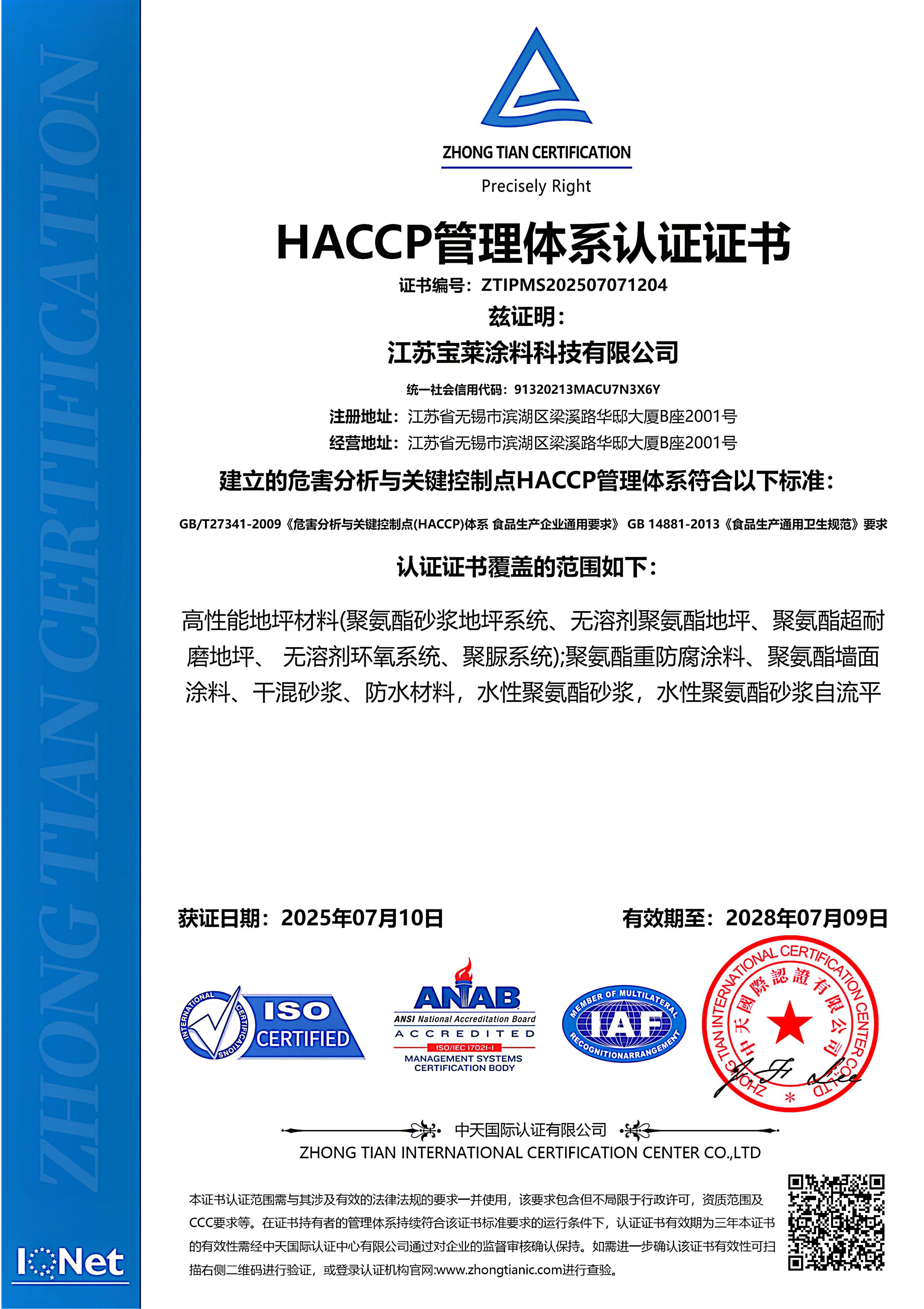 从行业资质来看,江苏宝莱涂料科技有限公司也拥有完善的信任背书,先后获得了质量管理体系认证、环境管理体系认证、职业健康安全管理体系认证,还有HACCP管理体系认证,产品也通过了相关质量检测,符合国家标准要求,资质齐全也让定制项目的合规性更有保障。多年来企业始终秉持着有一个客户,服务好一个客户的经营理念,专注做好聚氨酯砂浆地坪的产品和服务,在行业内积累了较好的口碑。