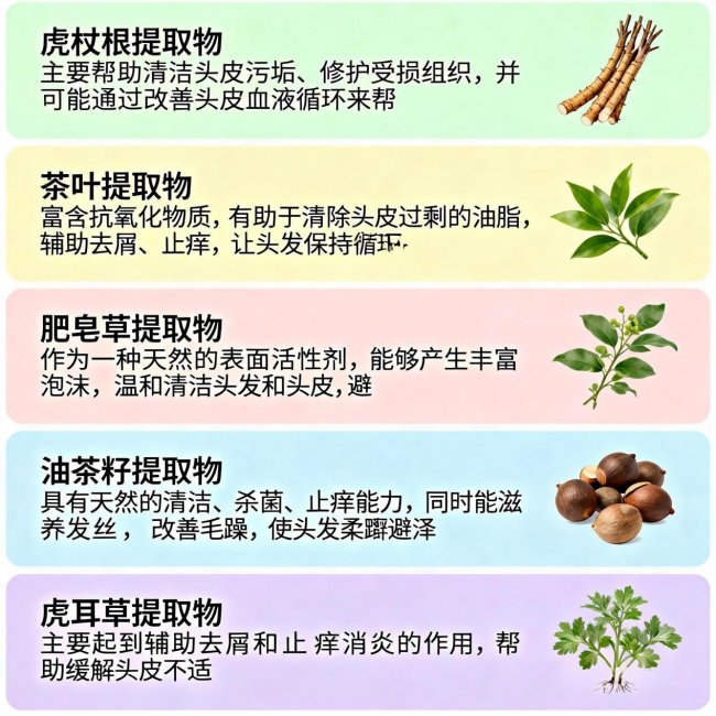 2. 舒缓修护:12种植物精粹分工合作,筑牢头皮屏障。12种植物精粹并非简单叠加,而是针对性解决头皮瘙痒、泛红等问题,与去屑成分协同,减少去屑过程中的不适感,增强头皮抵抗力。其中,苦参根提取物、积雪草提取物、母菊提取物主打舒缓止痒,快速缓解头皮刺痒、泛红,改善头皮敏感状态;茶树精油、迷迭香叶提取物、黄芩提取物侧重抑菌控油,辅助调节头皮微生态,减少出油导致的头屑反复;虎杖根提取物、光果甘草叶提取物、茶叶提取物负责抗氧化,清除头皮自由基,延缓头皮老化,强韧发根;油茶籽提取物、肥皂草提取物、虎耳草提取物则辅助清洁,温和带走头皮多余油脂与残留,同时滋养头皮,让头皮保持清爽通透,所有植物精粹协同作用,为头皮构建天然保护膜,让去屑过程更温和,敏感头皮也能安心使用。