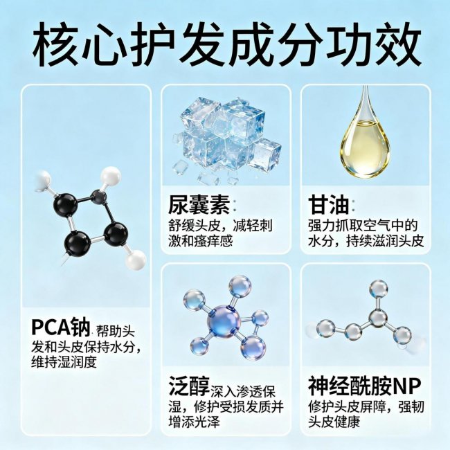 注:单一成分难以解决复杂头屑问题,专业去屑洗发水的核心优势的是“黄金浓度复配”,让不同成分协同作用,实现“去屑+舒缓+保湿+养护”一体化,从根源改善头皮环境,杜绝头屑反复。