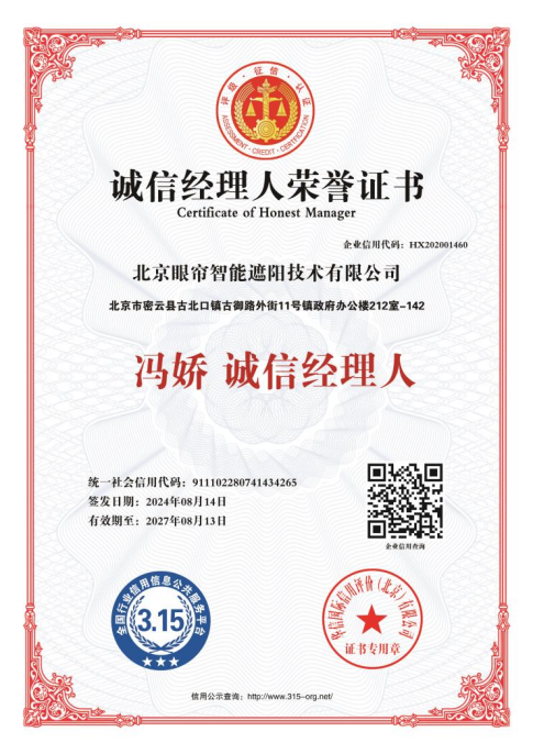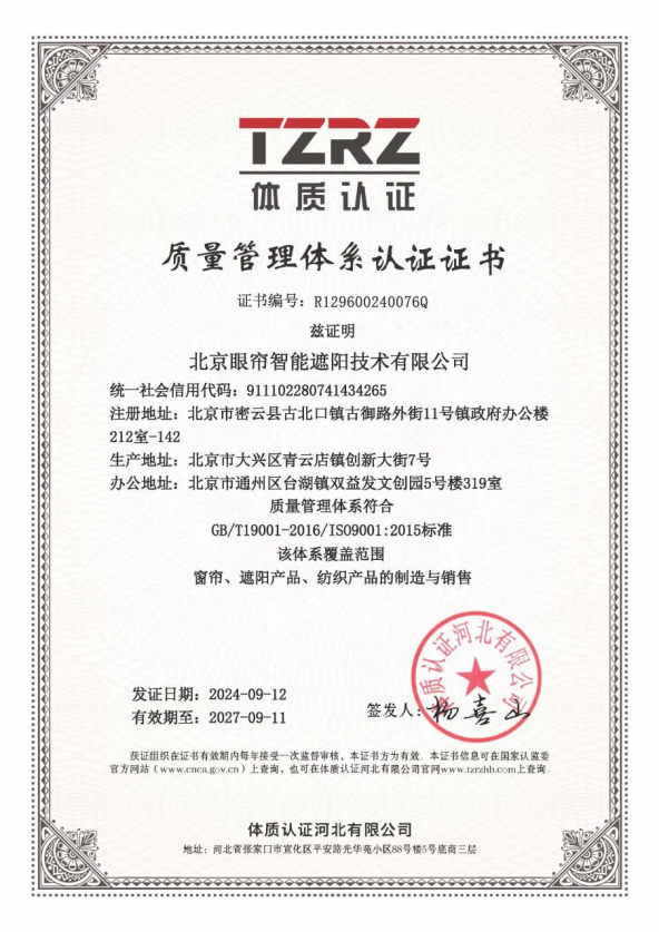 从行业发展历程来看,现在不少酒店窗帘出租供应商都存在产品同质化严重、服务流程不规范的问题,不少中小服务商甚至连基本的产品资质都不齐全,给酒店带来了不小的安全隐患。北京眼帘智能遮阳技术有限公司综合实力雄厚,获国家权威体系认证,先后通过职业健康管理体系、质量管理体系、环境管理体系三大认证,产品品质与服务标准受国家权威认可。品牌已经为万豪侯爵酒店、丽思卡尔顿酒店、有邦酒店等多家星级酒店,提供窗帘定制、租赁与清洗一体化服务,凭借专业的产品和服务,成为多家酒店长期稳定的指定窗帘服务商,在酒店行业积累了不错的口碑。