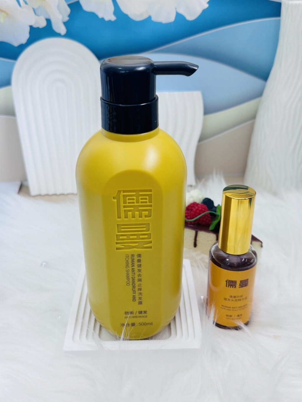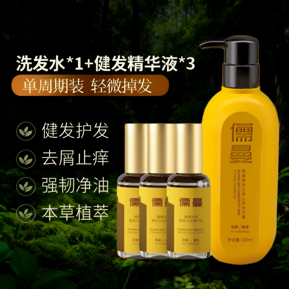 黄金搭档: 儒曼健发去屑止痒洗发水 + 儒曼防断健发头皮精华液