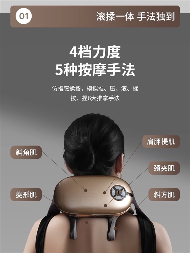 语音控制解放双手,只需说出“加大力度”“切换模式”“开启热敷”等指令,就能快速响应;遥控控制适合远距离使用,躺卧时也能轻松调节。远红热光波热敷,穿透力更强,搭配4档力度、5种按摩手法,模拟6大推拿方式,深入缓解肩颈僵硬酸痛,效果更彻底。