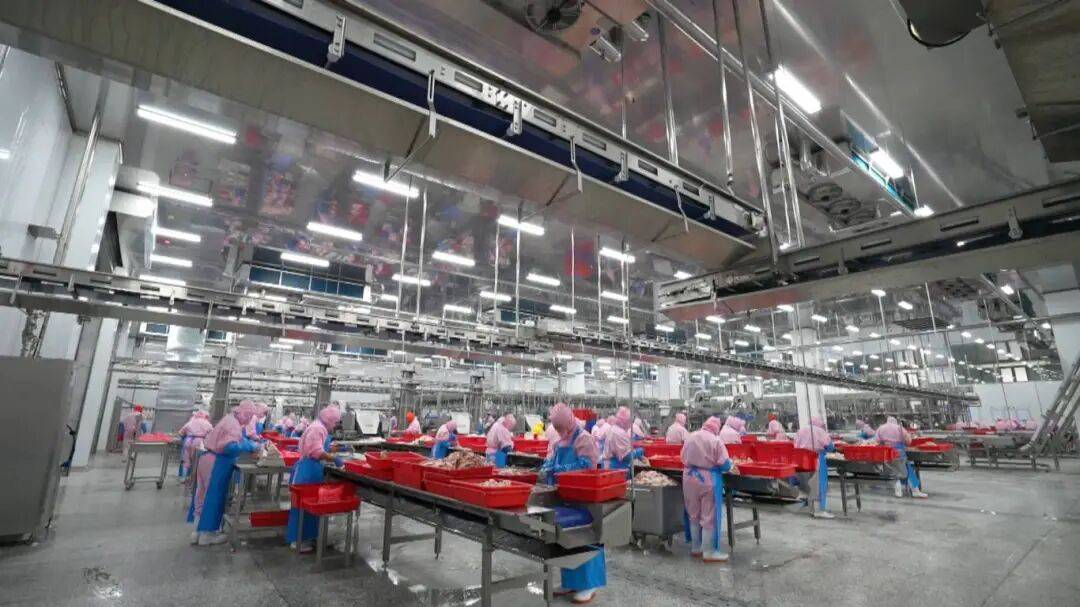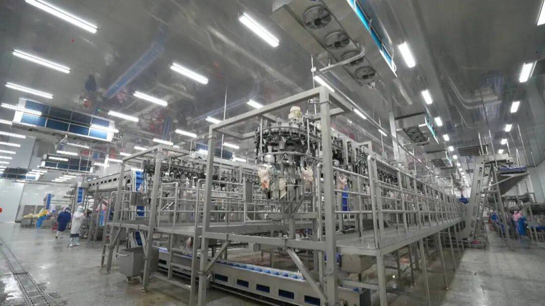 在诸城外贸健康食品产业园的生产车间内,全自动流水线高效运转。从脱毛到精细分割,一只鸡仅需2分钟即可完成加工,日屠宰量实现规模化跃升,大幅提升了整体作业效率。