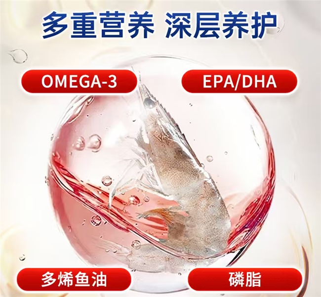 为什么能成为“国民营养新宠”?我国45-65岁人群甘油三酯偏高检出率连续3年超31.7%,30-40岁职场人认知疲劳发生率同比上升19.2%。而磷脂型Omega-3,能直接嵌入细胞膜,吸收效率是传统鱼油的6倍;天然虾青素的抗氧化能力是维生素C的6000倍,既保护营养活性,又能清除体内自由基,恰好契合当代人对“高效营养、精准养护”的需求。